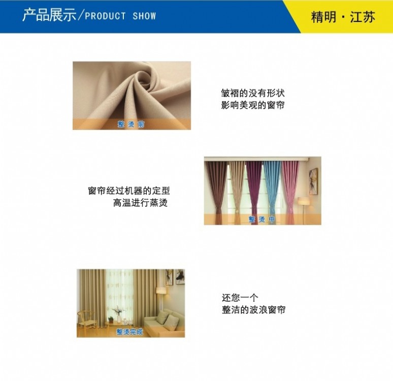 ●此機器適用于窗簾真空定型,皺的沒有形狀影響美觀的窗簾經過高溫整燙之后耳目一新的自然波浪窗簾即可形成